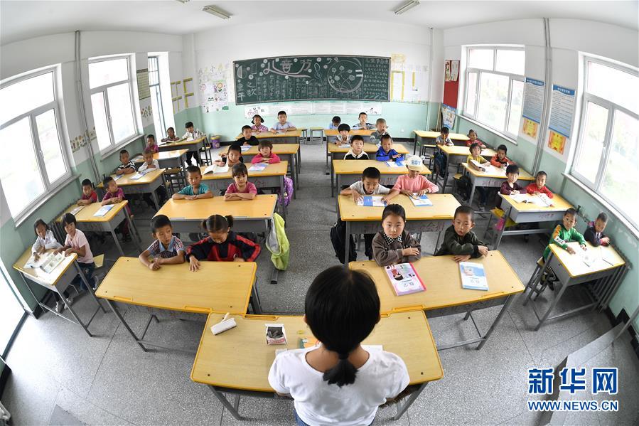 寧夏銀川市永寧縣閩寧鎮(zhèn)原隆村原隆小學(xué),一年級(jí)的孩子們?cè)谏险n(2019年9月3日攝)。 新華社記者 王鵬 攝