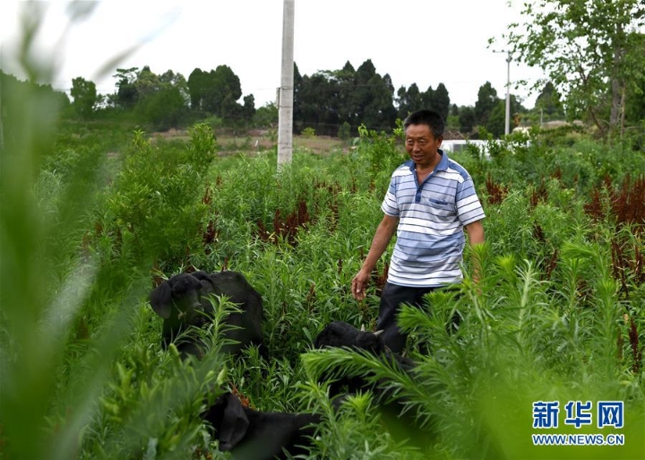 6月13日拍攝的四川省廣安市革新村(無人機(jī)照片)。 新華社記者 楊進(jìn) 攝 “喜羊羊”讓村民喜洋洋 連綿的小山坡上,樹木蒼翠,綠草茵茵,一群群黑山羊低頭吃草,遠(yuǎn)遠(yuǎn)望去,像綠毯上點(diǎn)綴的黑珍珠。 山坡下,62歲的樂至縣金鼓村村民楊老漢,一邊在柑橘園修枝,一邊笑呵呵地說:“‘雙掛鉤’讓我住上了好房子,‘喜羊羊’讓我過上了好日子?!?/p> 金鼓村曾是川中丘陵地區(qū)一個(gè)省級(jí)重點(diǎn)貧困村。楊老漢所說的“雙掛鉤”,是指城鄉(xiāng)建設(shè)用地增減掛鉤試點(diǎn)項(xiàng)目,加上危房改造項(xiàng)目支持,作為貧困戶的他,沒花多少錢就住進(jìn)了安全舒適的新房子。 “喜羊羊”則是當(dāng)?shù)?015年啟動(dòng)的精準(zhǔn)扶貧項(xiàng)目,采取“政府+企業(yè)+合作社+農(nóng)戶+保險(xiǎn)”的模式,確保黑山羊養(yǎng)殖標(biāo)準(zhǔn)化、收購(gòu)有門路、意外有保障。 楊老漢最初分到3只母羊,一年后母羊產(chǎn)下羊羔,他將母羊轉(zhuǎn)給其他貧困戶,自己保留小羊羔繼續(xù)飼養(yǎng)。 “技術(shù)、賣羊都有人管,我只管把羊喂好就行,現(xiàn)在都30多只嘍?!睏罾蠞h說,除了養(yǎng)羊,他還到柑橘園、藕塘打工,去年就摘掉了“窮帽子”。 金鼓村黨支部書記楊文武告訴記者,受益于“雙掛鉤”項(xiàng)目,目前全村有260戶村民搬進(jìn)了生態(tài)宜居的聚居新區(qū),其中貧困戶76戶。如今,脫了貧的村民都親切地把“喜羊羊”項(xiàng)目叫“幸福喜羊羊”。