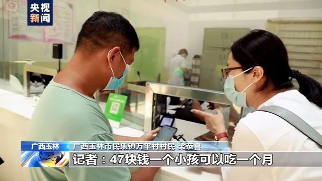 廣西玉林市民樂鎮(zhèn)萬(wàn)平村村民 梁恭喜:47塊6是吧? 記者:這個(gè)原價(jià)是多少錢??? 醫(yī)院工作人員:原價(jià)是4026塊3。 記者:47塊錢一個(gè)小孩可以吃一個(gè)月? 廣西玉林市民樂鎮(zhèn)萬(wàn)平村村民 梁恭喜:啊,這個(gè)費(fèi)用也降低了。 4000多塊的藥,自己只需要花40多塊,這在幾年前,梁恭喜根本不敢想象。