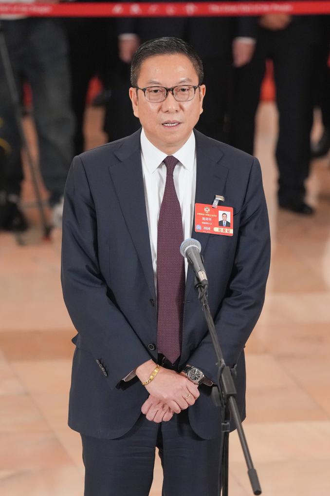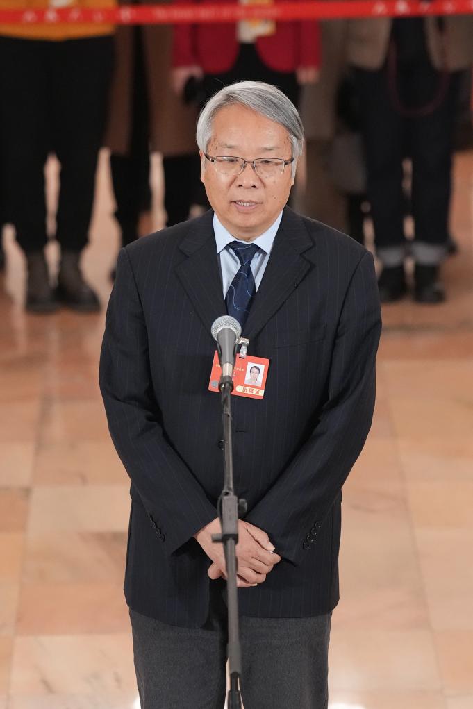 3月10日,全國(guó)政協(xié)十四屆三次會(huì)議第三場(chǎng)“委員通道”集體采訪活動(dòng)在北京人民大會(huì)堂舉行。這是全國(guó)政協(xié)委員施榮懷接受媒體采訪。新華社記者 才揚(yáng) 攝