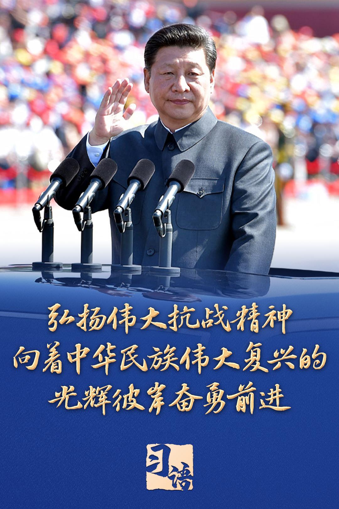 “新的歷史條件下,全黨全國各族人民要大力弘揚偉大抗戰(zhàn)精神,不斷增強團結(jié)一心的精神紐帶、自強不息的精神動力,繼續(xù)朝著中華民族偉大復興的中國夢奮勇前進,不斷以堅持和發(fā)展中國特色社會主義的新成就告慰我們的前輩和英烈!”