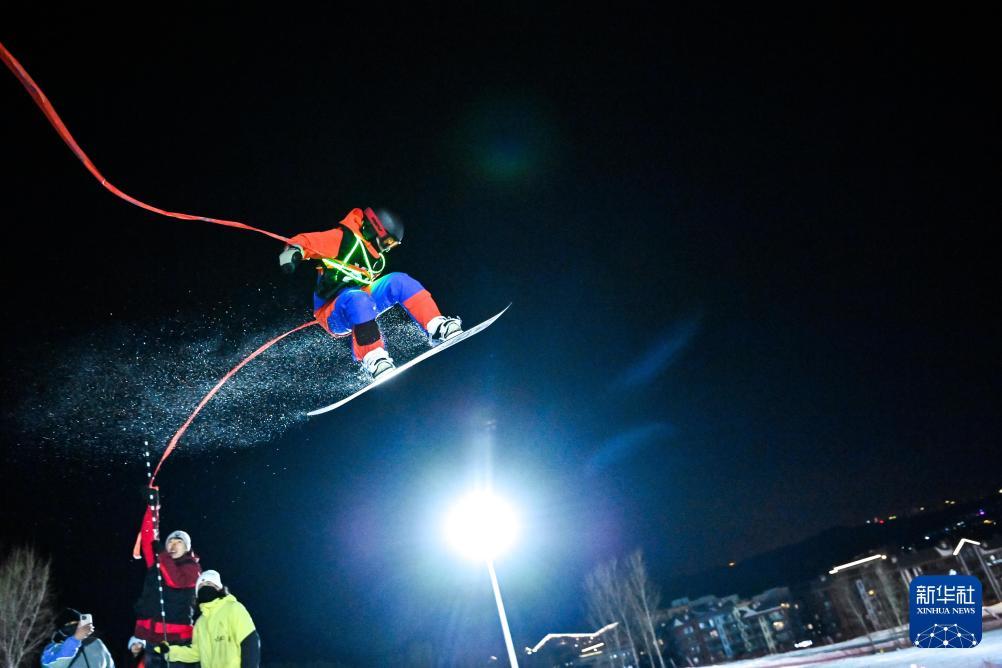 2022年12月10日,滑雪愛好者在位于吉林省吉林市的松花湖度假區(qū)V-PARK地形公園挑戰(zhàn)跳臺(tái)滑雪。新華社記者顏麟蘊(yùn)攝