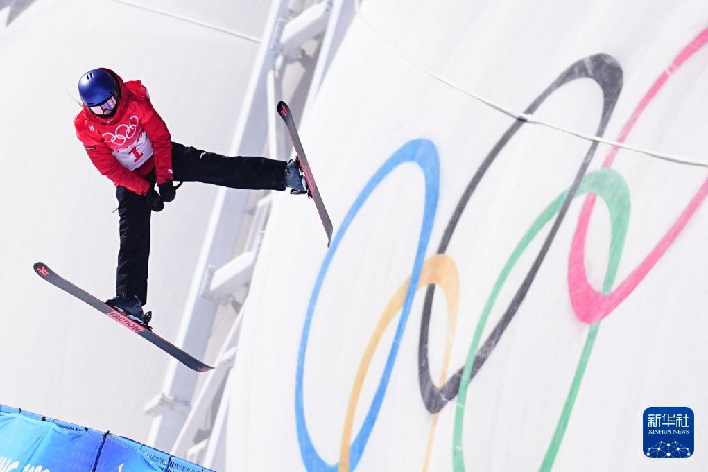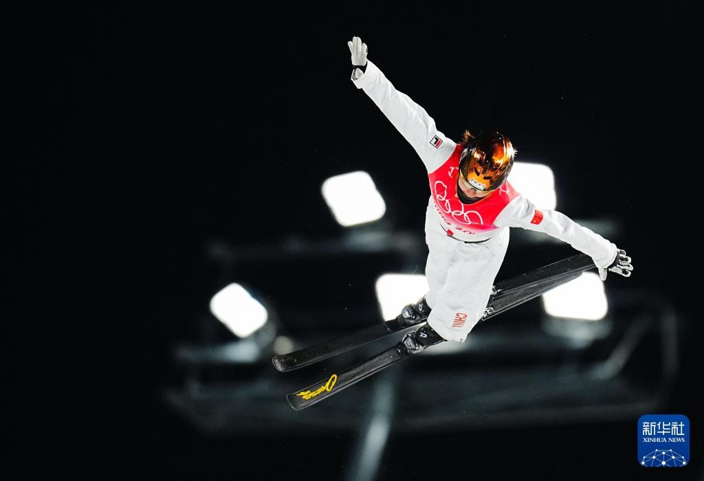 2022年2月14日,中國(guó)選手徐夢(mèng)桃在北京2022年冬奧會(huì)自由式滑雪女子空中技巧決賽中奪得冠軍。新華社記者許暢攝