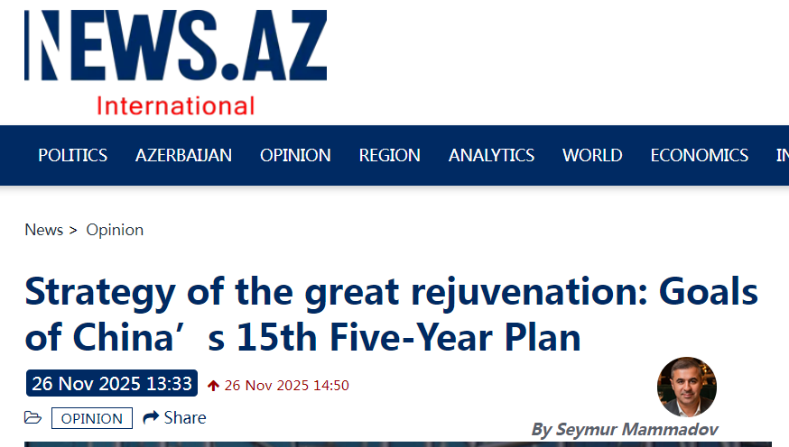 中國日報網(wǎng)11月28日電 近日,國際專家俱樂部EurAsiaAz主任塞繆爾·馬邁多夫在阿塞拜疆“News.Az”國際新聞網(wǎng)發(fā)表文章稱,在全球進入“戰(zhàn)略不確定時代”的背景下,中國謀定而后動,以罕見的長遠戰(zhàn)略眼光和堅定的執(zhí)行力,給出了截然不同的答案。