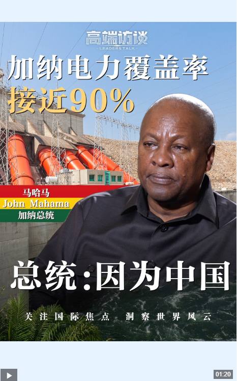 馬哈馬表示,中國(guó)在非洲基礎(chǔ)設(shè)施發(fā)展進(jìn)程中發(fā)揮了關(guān)鍵作用。在其他地區(qū),中國(guó)企業(yè)修建了連通加納城市的鐵路,并且為加納的農(nóng)村電氣化項(xiàng)目提供了資金支持。正因?yàn)橹袊?guó)的支持,如今加納電力覆蓋率接近90%,躋身非洲電力覆蓋率最高國(guó)家之列。