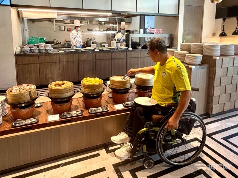 接待酒店餐廳對取餐處高度作出無障礙優(yōu)化,方便輪椅人士取餐(央廣網(wǎng)記者羅世偉 攝)