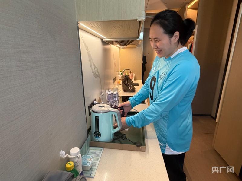 在酒店無障礙標(biāo)識的輔助下,盲人門球運(yùn)動員張魏輕松完成日常起居操作(央廣網(wǎng)記者羅世偉 攝)