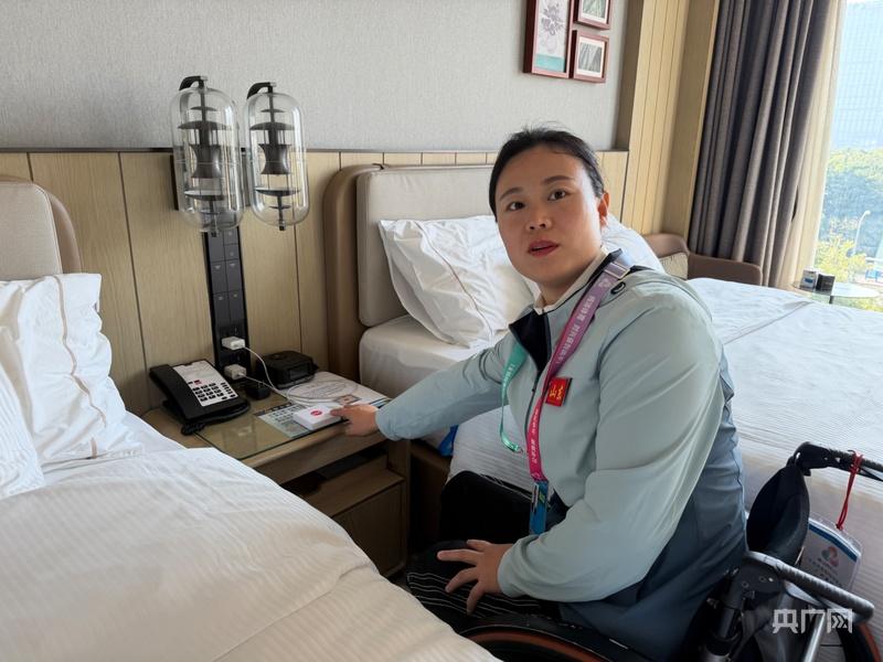 輪椅籃球運(yùn)動員孫藝萌介紹酒店的無障礙設(shè)計(央廣網(wǎng)記者羅世偉 攝)