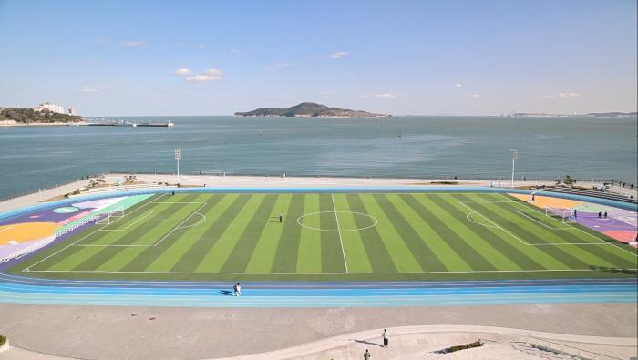 碧海藍(lán)天下的“至海港灣足球場(chǎng)”