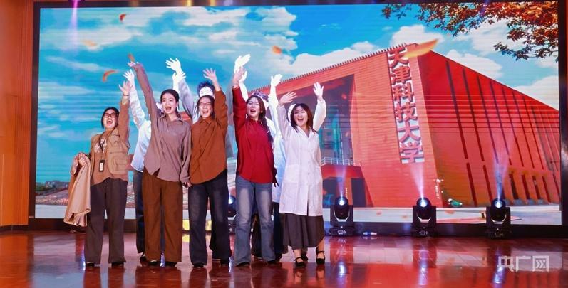 天津科技大學(xué)舞臺(tái)劇《科創(chuàng)未來·訓(xùn)勵(lì)長空》(央廣網(wǎng)記者 褚夫晴 攝)