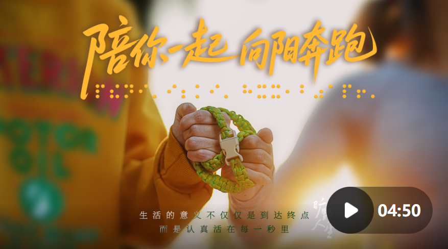 一條繩,一端在黑暗里,幫助視障群體在奔跑中感知世界的細膩聲響;一端在光明中,讓陪跑團成員學會了看見曾被忽略的風景。陪跑繩連接著彼此的世界,傳遞信任、溫暖。