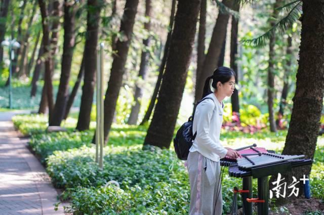 12月8日,廣州珠江公園,許興群正在轉動療愈互動裝置。
