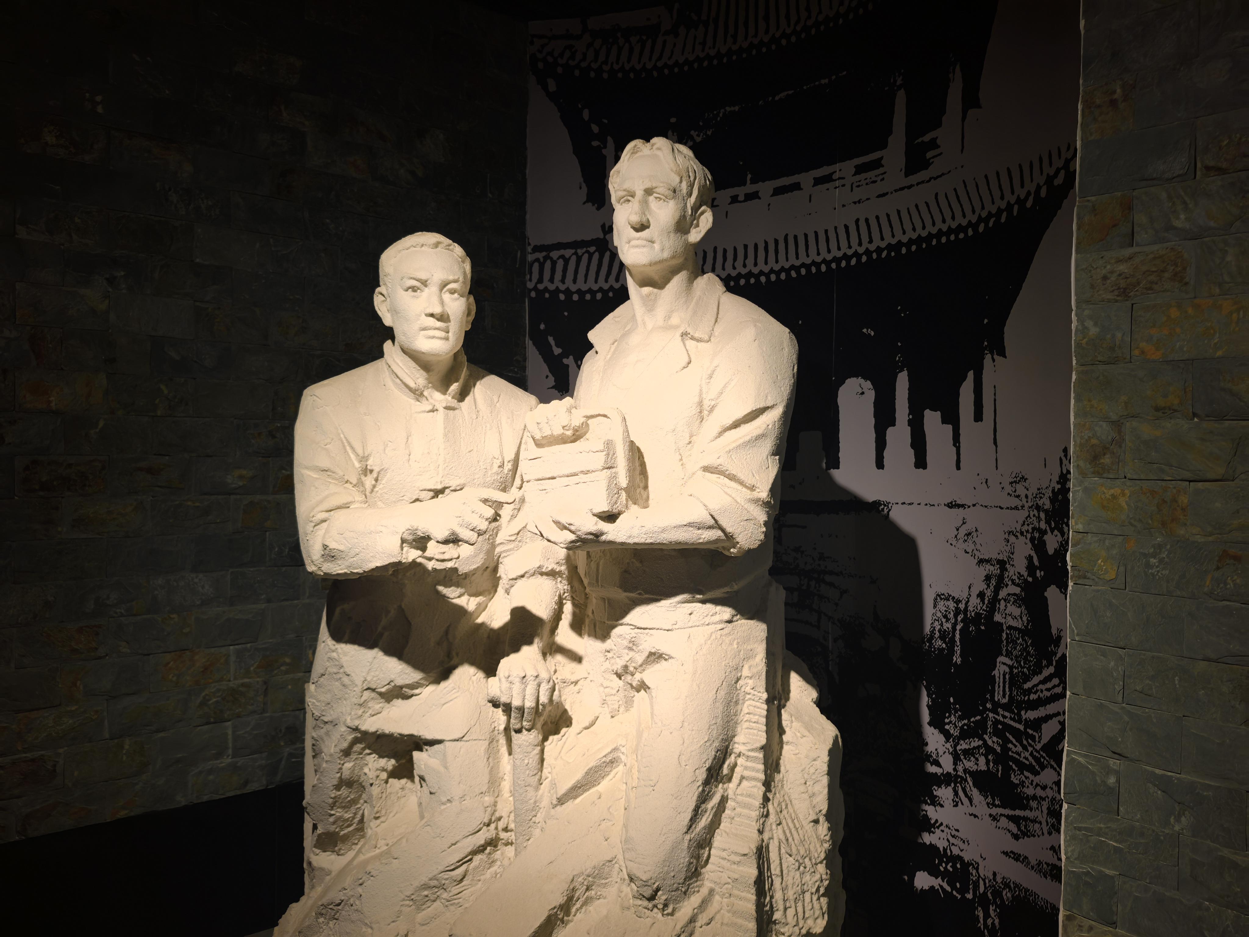 在沈陽二戰(zhàn)盟軍戰(zhàn)俘營舊址陳列館,一尊名為《友誼》的雕塑。新華社記者 武江民 攝