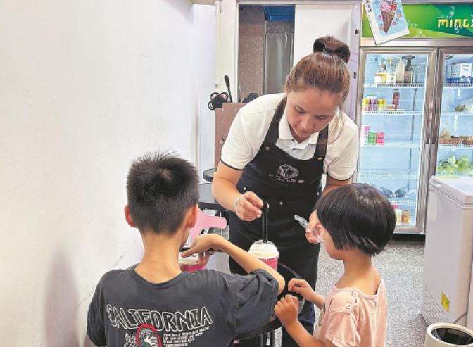楊蔭寬為留守兒童送上親手制作的八仙奶茶。本報(bào)通訊員 吳杭藝 攝 東南網(wǎng)8月26日訊(福建日?qǐng)?bào)記者 李妙珠)近日,一家臺(tái)灣青年經(jīng)營(yíng)的詔安特色飲料店刷爆了當(dāng)?shù)厝说呐笥讶?,這家店名叫“臺(tái)灣茶歐蕾”,主理人是臺(tái)青楊蔭寬。 2017年,楊蔭寬來(lái)到大陸創(chuàng)業(yè),2020年嫁到漳州詔安?!皝?lái)到詔安,我覺(jué)得很親切,這里的語(yǔ)言、飲食、習(xí)俗和臺(tái)灣很相似?!睏钍a寬說(shuō)。 詔安的八仙茶和青梅是當(dāng)?shù)氐拿麅?yōu)特產(chǎn),臺(tái)灣茶飲也久負(fù)盛名。2022年,楊蔭寬決定結(jié)合臺(tái)灣奶茶的制作工藝,制作詔安的特色茶飲。 為了制作高品質(zhì)的茶飲,楊蔭寬不惜以成本較高的八仙茶做茶底,同時(shí),楊蔭寬不斷嘗試將八仙茶與詔安青梅、八仙茶與鮮奶等結(jié)合,通過(guò)冷泡技術(shù),研制符合年輕人口味的新茶飲。經(jīng)過(guò)不斷研制、調(diào)試,楊蔭寬推出的詔安特調(diào)系列茶飲深受消費(fèi)者喜愛,成為當(dāng)?shù)氐闹放啤?/p> “老板,兩杯‘青梅竹馬’,少冰半糖!”近日,記者走進(jìn)“臺(tái)灣茶歐蕾”,楊蔭寬正忙著接訂單,為顧客制作“青梅竹馬”詔安特色青梅果茶、詔安八仙奶茶等茶飲。 “創(chuàng)新之路本來(lái)就是比較難的,如果只是開一家普通的奶茶店,我完全可以去加盟品牌店。既然落地詔安,那我就要做出符合當(dāng)?shù)乜谖丁⑷诤袭?dāng)?shù)厝宋牡脑t安特色茶飲?!睏钍a寬表示,茶飲也是農(nóng)產(chǎn)品推廣的手段之一,八仙茶和青梅制作成茶飲后消費(fèi)者的接受度更高,后續(xù)也會(huì)到外地開店,讓詔安特色通過(guò)茶飲“走出去”。 2023年10月,詔安縣“兩岸青年驛站”在楊蔭寬的“臺(tái)灣茶歐蕾”揭牌成立。驛站主要致力于幫助臺(tái)灣青年了解大陸,為臺(tái)灣青年提供顧問(wèn)咨詢、法務(wù)咨詢、人力資源、投融資對(duì)接等交流服務(wù),從企業(yè)注冊(cè)、創(chuàng)業(yè)疑難、稅務(wù)政策等方面為臺(tái)青臺(tái)企答疑解惑,促進(jìn)兩岸青年共同逐夢(mèng)、共同成長(zhǎng)。 “詔安給了我們臺(tái)灣青年很大的發(fā)展空間,我希望把真實(shí)、立體的大陸告訴更多臺(tái)灣朋友,帶他們走出島內(nèi)的‘小確幸’,在大陸廣闊的舞臺(tái)勇敢地追夢(mèng)圓夢(mèng)?!睏钍a寬說(shuō)。 近日,楊蔭寬又多了一重身份——“愛心媽媽”。詔安首個(gè)女臺(tái)胞“愛心媽媽驛站”在“臺(tái)灣茶歐蕾”掛牌成立,將為留守兒童提供暖心關(guān)愛,同時(shí)傳遞兩岸親情、傳播愛心事業(yè)。楊蔭寬說(shuō),她會(huì)繼續(xù)用實(shí)際行動(dòng)呼吁更多臺(tái)灣女性加入愛心媽媽隊(duì)伍,助力閩臺(tái)親情融合。 |