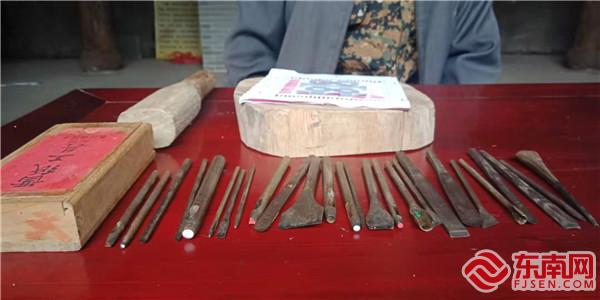 老藝人對傳統(tǒng)鑿具進(jìn)行了改良。 東南網(wǎng)記者 賴志昌 攝 此外,為了讓刻紙龍燈煥發(fā)新的時代光彩,他們還對傳統(tǒng)鑿具進(jìn)行了改良、增進(jìn)?!耙酝従咧挥惺畮赘?,做出的圖案比較粗糙,改良后增加到二三十根,可根據(jù)需求做出不同圖案?!迸砟较舱f,改良后的鑿具更加精細(xì)、多樣,鑿刻的圖畫也更加美觀,更符合現(xiàn)代人審美。
