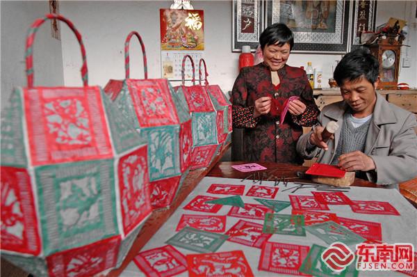 張延玉老人在制作刻紙龍燈 東南網(wǎng)記者 賴志昌 攝 “噔噔噔…”端坐在長椅,將刻紙墊在圓木上,張延玉聚精會神地拿出小木棒有力地敲擊鋼鑿,一張普通A4大小的紙張,經(jīng)他妙手輕敲細(xì)鑿,一點(diǎn)一點(diǎn)地成型變成了精美絕倫的藝術(shù)品。 慢工出細(xì)活。制作龍燈頗費(fèi)精力與時間,一個24孔八面的燈籠,平均需耗時一天時間?!爸谱骺碳堼垷魶]啥訣竅,心要靜、慢慢鑿,得一步一步來!”張延玉深得這項(xiàng)技藝的要領(lǐng)。 歲月漸遠(yuǎn),年味漸淡。如今對于張延玉等老藝人來說,刻紙龍燈是滿滿的鄉(xiāng)愁與回憶?!耙郧凹壹覒魬舳甲鰺?,現(xiàn)在做的人少了,參與這項(xiàng)活動的年輕人也越來越少?!睆堁佑裾f,鼎盛時期村里做刻紙龍燈的有四百多戶人參加,龍燈總長達(dá)千米,而今只有七十余戶人參與,長度不超過二百米。 2011年,刻紙龍燈被列入省級非物質(zhì)文化遺產(chǎn)名錄,聲名遠(yuǎn)播。然而,與名氣形成鮮明對比的則是,刻紙龍燈的傳承卻面臨后續(xù)乏人的局面。如何讓這門古老的民間技藝薪火相傳?這成了當(dāng)下張延玉等老藝人憂心的事。