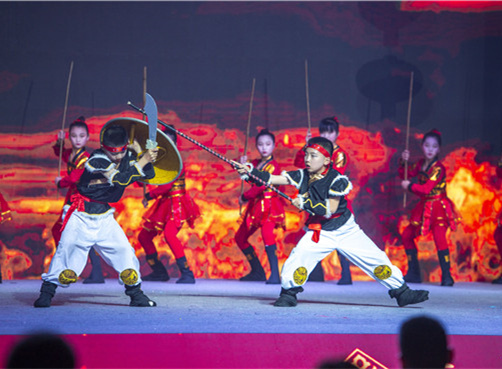 在2020年第四屆平潭少兒春晚上,陳文英的小弟子們上臺(tái)演出。 江信恒 攝 近年來,藤牌操開始頻繁在重要場(chǎng)合中亮相,發(fā)展可謂有聲有色。2017年1月,平潭藤牌操入選福建省第五批省級(jí)非物質(zhì)文化遺產(chǎn)代表性項(xiàng)目名錄,再次迎來了重?zé)ü廨x的時(shí)刻。2018年7月,平潭藤牌操傳承基地落成,分散在各地的藤牌操傳人得以來此交流學(xué)習(xí),努力恢復(fù)部分失傳的套路,還能對(duì)其進(jìn)行重新打磨改良,更好地發(fā)揮傳承與創(chuàng)新的作用。 如今,陳文英將目光投向文創(chuàng)行業(yè),希望能夠緊抓文創(chuàng)熱潮,吸引藝術(shù)家來嵐開發(fā)藤牌操相關(guān)文創(chuàng)產(chǎn)品,讓這件“傳家寶”能夠走入更多年輕人的視野?!疤倥撇俪休d著保家衛(wèi)國(guó)、英勇無(wú)畏的正能量,我期待著,能有更多人將它學(xué)精學(xué)透,傳承下去?!彼f。 (東南網(wǎng)記者 張哲昊) |