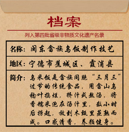 閩東畬族烏飯制作技藝宣傳片 視頻由受訪者提供 一粒米、一片葉,一段非同尋常的交融。九浸九蒸九曝,講究的制作工藝,讓畬族烏米飯的清香,歷經(jīng)1300多年,依然濃郁襲人。 從山野鄉(xiāng)村的尋常小吃到景區(qū)酒店的餐桌特色佳肴,從家庭小作坊發(fā)展到企業(yè)化經(jīng)營,從地方美食到名揚(yáng)四?!瓡r(shí)至今日,在一些“有心人”的推助下,這個(gè)富有民族特色的小吃——畬家烏飯重?zé)ㄉ鷻C(jī),續(xù)寫著新的傳奇。 一碗烏飯,他做了一輩子