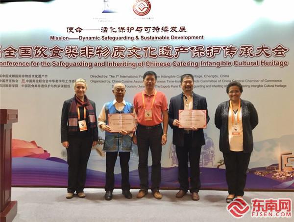 立強(qiáng)畬族烏飯經(jīng)營部被授予“全國飲食類非物質(zhì)文化遺產(chǎn)保護(hù)與傳承示范單位”稱號。左二為吳立強(qiáng)。受訪者供圖 2019年10月18日,在成都舉辦的首屆全國飲食類非物質(zhì)文化遺產(chǎn)保護(hù)傳承會上,寧德市蕉城區(qū)立強(qiáng)畬族烏飯經(jīng)營部被授予“全國飲食類非物質(zhì)文化遺產(chǎn)保護(hù)與傳承示范單位”稱號。 吳立強(qiáng)并非畬族人,可他一生卻對畬族祖祖輩輩流傳下來的烏飯,有著近乎癡迷般的熱愛和執(zhí)著,并傳承發(fā)揚(yáng)了烏米飯這一畬族獨(dú)特食品的制作技藝。談起與烏飯結(jié)緣的經(jīng)歷,年過古稀的吳立強(qiáng)將那段50多年前的往事娓娓道來。 1962年,20歲的吳立強(qiáng)師范畢業(yè)后來到柘榮縣富溪鎮(zhèn)竹嶺村小學(xué)當(dāng)老師,在這個(gè)文盲居多的畬漢混居村落,吳立強(qiáng)受到格外地尊重和照顧。每年農(nóng)歷“三月三”,當(dāng)?shù)氐漠屪謇习傩諘蜑趺罪埥o他,他在品嘗之后就立刻喜歡上了這一畬族美食。 “這么好的美食為何他之前沒有品嘗到?”他帶著疑問,利用暑假走訪了閩東很多畬族村,還到了浙江景寧畬族自治縣考察。令他感到意外的是,烏米飯?jiān)谶@些畬族村居已幾近失傳,這更加堅(jiān)定了他保護(hù)和挖掘這一民族特色食品的決心。 由此,他利用課余時(shí)間尋找有關(guān)畬族的書籍了解烏飯的來歷,并向鄉(xiāng)親們討教制作工藝。 經(jīng)反復(fù)實(shí)踐,吳立強(qiáng)的烏飯制作工藝日益精進(jìn)。1995年,吳立強(qiáng)帶著制作的50斤烏米飯來到蕉城,把烏米飯送進(jìn)各個(gè)賓館酒樓免費(fèi)讓客人品嘗,食客們的交口稱贊讓吳立強(qiáng)吃下了“定心丸”。 此后,他便提前辦了退休手續(xù),舉家遷到蕉城,專門開了個(gè)烏飯加工坊。1996年,他把親自制作的烏飯送到福州五一路上各酒樓進(jìn)行推廣。后來,這些酒樓都與他簽下了合同。最多時(shí),吳立強(qiáng)制作的畬家烏飯打入全省九地市1100多家酒樓,平均每天的銷售量達(dá)到上千斤。 擇一事,鐘一生。就這樣,一碗烏米飯,吳立強(qiáng)一做就是50多年。“不僅要把畬家烏飯傳承下去,還要把它創(chuàng)新和發(fā)揚(yáng)出去。”吳立強(qiáng)把烏飯當(dāng)成了畢生的事業(yè)去奮斗,如今年過古稀,他依然活躍在宣傳推介閩東畬族烏飯制作技藝一線。 傳承千年 曲折發(fā)展終見光
