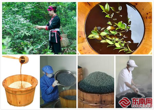 畬族烏米飯制作流程。受訪者供圖 “烏飯的制作流程易懂,但掌握其中的訣竅卻并不容易?!眳橇?qiáng)介紹,烏飯的精加工講求黑、亮、晶、香四個(gè)標(biāo)準(zhǔn)。要達(dá)到這四個(gè)標(biāo)準(zhǔn),就必須嚴(yán)格把關(guān)制作程序。例如烏稔樹葉應(yīng)在早上無露水時(shí)采摘,采下的樹葉應(yīng)松散放在籃中,不要擠壓,避免發(fā)熱,因?yàn)橐坏┌l(fā)熱就會降低各種元素的含量,且超過10小時(shí)就不可再用。 “烏飯之所以受大眾喜愛,除了好吃外,它還有養(yǎng)生的功效,主要是因?yàn)橹谱鳛躏埖闹匾牧稀獮躏??!眳橇?qiáng)說,烏稔樹葉也稱南燭葉,具有很高的營養(yǎng)價(jià)值。李時(shí)珍的《本草綱目》中記載:南燭止泄除睡,強(qiáng)筋益氣,利腸胃,補(bǔ)骨髓,久服,固精駐顏,輕身明目,變白卻老。 “早些年參加展銷活動時(shí),顧客對這個(gè)畬族特色產(chǎn)品一無所知,很多人因其外形,連了解的意向都沒有,甚至認(rèn)為是添加了染色劑?!被叵肫鹪缧┠甑奶幘?,吳立強(qiáng)唏噓不已。 吳立強(qiáng)說,為了確保讓顧客放心食用,2005年,他委托福建省農(nóng)科院對烏飯做了營養(yǎng)檢測,檢測結(jié)果表明烏飯是食療兩用的健康食品。 吳立強(qiáng)對于畬族烏飯的堅(jiān)守,靠的是心底的一份熱愛與初心。隨著時(shí)代的發(fā)展,傳承人仍在不斷尋求創(chuàng)新來更好地傳承老祖宗留下來的美食。