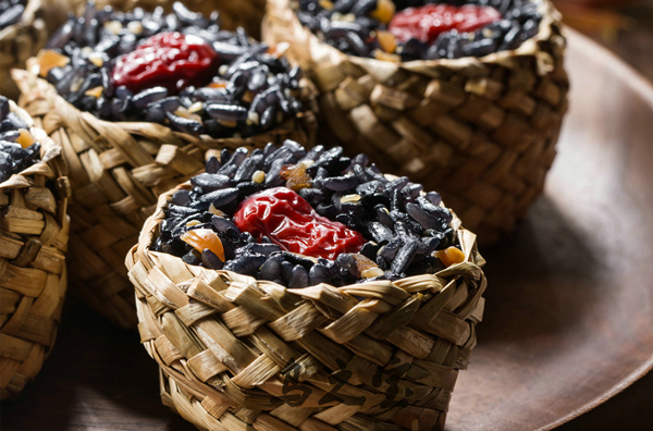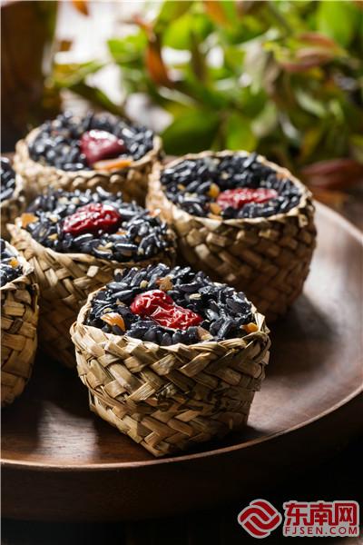 草袋烏米飯。受訪者供圖 烏米飯是用畬山特有植物烏稔葉搗爛,擠汁或熬湯,將香糯米泡在湯汁里,數(shù)小時(shí)后撈起,放到木甄里蒸熟而成。 “畬族歷來有‘三月三,染烏飯’的習(xí)俗,烏飯對畬家人意義非凡?!?017年成為閩東畬族烏飯制作技藝省級代表性傳承人的吳立強(qiáng)介紹說,每年農(nóng)歷三月三,是畬民敬天地、祖宗的節(jié)日。這一天,畬族村民不出工,男女青年成群結(jié)隊(duì)外出春游,采來野生植物烏稔葉,制作烏米飯,緬懷先祖,預(yù)祝豐收。 烏米飯起源可追溯到唐朝,相傳畬族的兩位先祖因反抗當(dāng)朝政權(quán)壓迫,在斷糧絕草之際,偶得烏稔樹所結(jié)之果實(shí)而得以果腹,進(jìn)而制出了“烏飯”。從此,每年農(nóng)歷“三月三”,畬民都會做烏米飯過節(jié),相沿成俗已有1300多年,是畬族三寶之一。 2011年12月,閩東畬族烏飯制作技藝被列入省級非物質(zhì)文化遺產(chǎn)名錄,它也是福建唯一入選中國民族餐飲委員會推薦的民族特色餐飲美食。