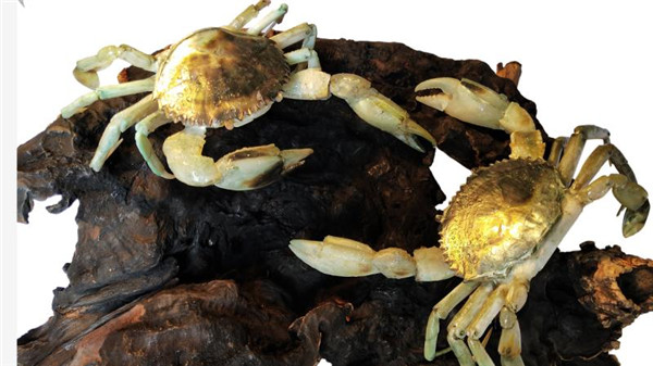 詹勝創(chuàng)作的貝雕《活蟹》。 受訪者供圖 詹勝的作品《活蟹》就是以平潭特產(chǎn)——金鱘為靈感創(chuàng)作的,這也是他對藝術(shù)執(zhí)著追求的生動詮釋。他說:“傳統(tǒng)的貝雕作品一般是靜態(tài)的,我希望能有所創(chuàng)新,制作出能夠‘動起來’的作品?!?/p> 為了用貝殼制作出逼真的金鱘,詹勝特意買來了兩只金鱘,細致入微地觀察它們的一舉一動,還用游標卡尺精確衡量金鱘每個部位的尺寸,并將自己的構(gòu)思一一畫在設(shè)計圖中?!盀榱四茏龀霰普娴摹瘅\’,我選擇黑蝶貝作為基底,用噴槍來焊接貝殼,讓紋路更加清晰?!闭矂僬f。 經(jīng)過反復(fù)地精雕細磨、堆貼組裝,詹勝成功讓“金鱘”的前肢兼具彈性和力度,每一只蟹腳都可曲折,令人嘆為觀止。 “這是一門‘指尖上的藝術(shù)’,從設(shè)計、分解,到黏合、拼合,其制作工序多達數(shù)十道,一件作品常常要花上幾個月的時間手工打磨?!闭f起貝雕的制作步驟,他如數(shù)家珍。 秉持著對藝術(shù)的執(zhí)著,詹勝苦練“內(nèi)功”,在貝雕圈子里有了一席之地,并獲得了市場和收藏界的認可。如今,他的作品最高可以賣出上萬元的價格。 活態(tài)傳承,復(fù)興貝雕產(chǎn)業(yè)