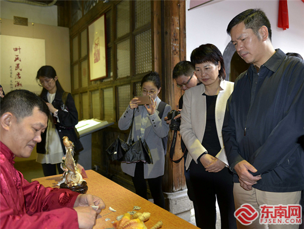 在平潭貝雕藝術(shù)館,詹勝向記者介紹貝雕作品。東南網(wǎng)記者 張哲昊 攝 走進平潭貝雕藝術(shù)館展覽廳,里面擺滿了各式各樣的貝雕作品,從形象逼真的花卉到端莊秀麗的仙女,讓人應(yīng)接不暇,其中有不少出自詹勝之手。 這些年,平潭國際旅游島建設(shè)風生水起,來嵐游客數(shù)量逐年攀升,這也為平潭本土工藝品帶來了商機。著眼于打造文化旅游新名片,當?shù)卣ν苿觽鞒?、保護貝雕藝術(shù),打造貝雕伴手禮,令市場再度掀起了“貝雕熱”,相關(guān)產(chǎn)業(yè)再度崛起。 得益于此,福建映像海壇文化創(chuàng)意有限公司成立3年后,在2015年首次營業(yè)額突破百萬元。
