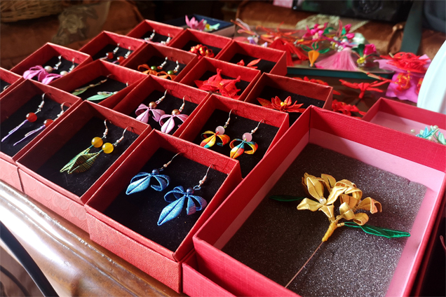 洪曉瑜將越來越多的創(chuàng)意融入春仔花制作。 東南網(wǎng)記者 鄒玒攝 洪曉瑜說,翔安洪厝的春仔花習(xí)俗源遠(yuǎn)流長,傳承人們都希望能將傳統(tǒng)的東西保留下來,這也是吸引臺灣同胞的關(guān)鍵。而臺灣來洪厝的手藝人帶來的文創(chuàng)品也相當(dāng)成熟,他們對絲線、材料的結(jié)合,充分發(fā)揮了優(yōu)勢,同時結(jié)合水鉆、珠寶等,提升了附加價值。一次次地交流學(xué)習(xí),雙方都帶來了自己的作品,在作品中博采眾長。春仔花原本是簪花,扎在頭上,如今,洪曉瑜還將其制作成耳環(huán)、胸針、插花等文創(chuàng)產(chǎn)品。 在互相學(xué)習(xí)中,春仔花也跳出了傳統(tǒng)視野,將當(dāng)下流行的文創(chuàng)理念融匯其中?!艾F(xiàn)在很多人流行穿漢服,我們還接了很多地區(qū)的漢服配飾訂單,可以根據(jù)服飾顏色與需求,定制一整套頭飾,還有其他小首飾?!蹦壳?,洪曉瑜也接一些訂制訂單,很多顧客會提供自己喜歡的樣式過來,“我們要將春仔花繼續(xù)傳承下去,不斷吸納新鮮的理念,豐富它的內(nèi)涵,讓它走得更遠(yuǎn)?!保ū揪W(wǎng)記者 鄒玒 李奇) |
