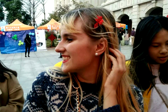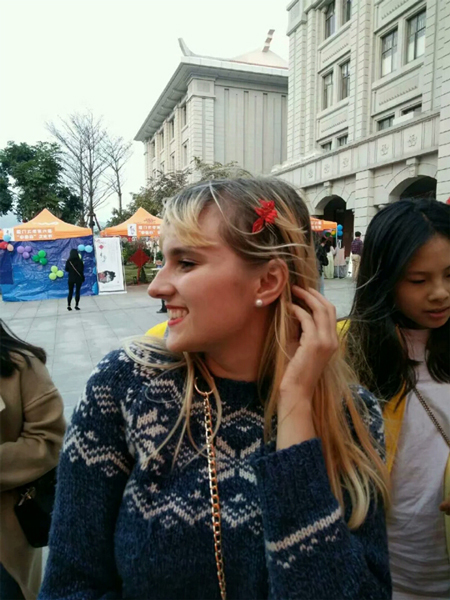 廈門大學(xué)的交流活動中,外國友人佩戴春仔花。 受訪者供圖 在村子里,評比誰家的花做得好,就像一場人們口中的“選秀”。不僅每家每戶的巧婦人會溝通交流,更有不少人慕名而來。自從春仔花習(xí)俗獲評首批廈門市非物質(zhì)文化遺產(chǎn)后,前來取經(jīng)的人越來越多。 “有不少是訂貨的,他們到村口一問,想要什么花式的、什么價位的,村民們心里都有數(shù),就會推薦到相應(yīng)的人家?!焙闀澡ふf,如今,也有不少手工愛好者前來,在這里待上一段時間,專門學(xué)習(xí)這門手藝,這其中也不乏來自臺灣的手藝人。 臺灣的春仔花是明朝后期閩南移民帶去的,在洪曉瑜看來,這是兩岸一衣帶水的緣分。一開始,臺灣當(dāng)?shù)氐牧?xí)俗并沒有洪厝這么講究,春仔花的花式花樣也不如洪厝齊全?!扒皫啄暧胁簧倥_灣的手藝人來參觀,我們也很開心有這樣的機會和他們交流?!焙闀澡ふf,因地域不同,春仔花在不同地區(qū)發(fā)展出了屬于自己的藝術(shù)特色,“臺灣有的地方一開始是用皺紋紙來做,也有的地方花比較小,臺灣手藝人來洪厝參觀學(xué)習(xí)后,我們給他們寄去一整套的春仔花及材料,我們這的寓意也慢慢融入他們的春仔花里”。2018年,臺灣纏花(春仔花)藝師陳惠美及其助理陳秀敏前來參加海峽兩岸民間藝術(shù)節(jié)之“傳統(tǒng)工藝DIY”活動,洪曉瑜同其他傳承人一道,進行了現(xiàn)場交流和溝通。