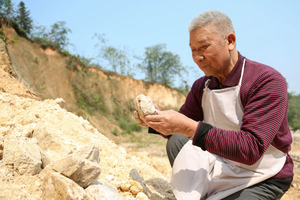 林俊檢查陶土情況。 莊偉杰攝 要制作出精美絕倫的藝術(shù)品,不僅設(shè)備要“古早”,制作技藝也得講究傳統(tǒng)。在漳州古陶瓷工藝研究所里,直徑3米的古老水車、30米長的水池、2米高的生火窯爐……一派古老窯址的原貌。在這里,捶打、淘洗瓷土的工藝用的都是古法,與復(fù)原的古代設(shè)備相得益彰。 “制作一件東溪窯瓷器,前后要歷經(jīng)幾十道工序?!绷挚”硎荆瑥拇蟮姆矫鎭碚f,練泥、拉坯、彩繪、晾坯、燒窯是制作東溪窯瓷器的主要工序,但每一道工序里又包含好幾道小工序?!耙詫ν诰虺鰜淼奶胀撂幚頌槔胀恋牟煌课挥猛静灰粯?,要分門別類??拷脖荒菍硬荒苡?,須舍棄,比較堅硬部位還要選出來用作釉水的材料?!绷挚〗榻B,分類好后,對陶土不同部位的捶打處理也不一樣。“用來制作瓷泥的陶土要經(jīng)過兩天兩夜的捶打,之后在水里淘洗,最后放入水池陳腐一周左右的時間。用作釉水材料的陶土則要磨成粉末?!?/p>