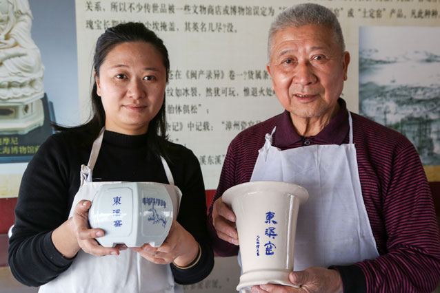 林俊和他的女兒林瑩展示東溪窯瓷器成品。 莊偉杰攝 此外,林俊的兒女林瑩、林濤也繼承了這一事業(yè),學(xué)習(xí)東溪窯傳統(tǒng)燒制技藝,這讓林俊對這門技藝的未來有了更多的信心和底氣。 當(dāng)然,傳承和發(fā)展東溪窯文化及其傳統(tǒng)燒制技藝,林俊他們并非孤身奮戰(zhàn)。2016年7月,國家文物局把東溪窯遺址列為“海上絲綢之路·中國史跡”申遺名單,此后,南靖加快了推進(jìn)東溪窯申遺工作的腳步:2018年7月,建設(shè)面積1400平方米、展示實物500件(套)的南靖東溪窯博物館揭牌開館;2019年6月,“海絲”·南靖東溪窯封門坑保護(hù)性設(shè)施建設(shè)工程完工,為更好地傳承和保護(hù)東溪窯傳統(tǒng)燒制技藝提供了重要保障。
