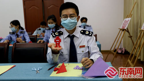 東南網(wǎng)12月8日訊(通訊員 盧海燕)“紙動剪刀不動,在拐角處要特別注意用剪刀的尖角來處理細節(jié)?!薄皩玻氵@剪得很好了,再大膽一點,這部分再剪進去一點?!薄澳愕膭邮帜芰軓娎玻憧梢栽侔丫€畫長一點,一會剪出來的弧度會更大一點更好看一點……”