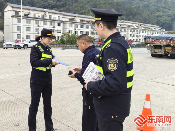 開展公路安全普法宣傳,發(fā)放宣傳單。寧德高速執(zhí)法支隊供圖 多維普法構(gòu)建法治矩陣 普法服務(wù)隊積極創(chuàng)新普法服務(wù)模式,組織“法治夜?!睂n}講座5課時,7座以下小轎車“非法營運”等高頻違法案件開發(fā)特色課程13課時;推出“法律體檢”進(jìn)企業(yè)服務(wù),為2家運輸企業(yè)提示道路運輸法律風(fēng)險點7處。在日常執(zhí)法過程中同步發(fā)放《危險貨物運輸風(fēng)險提示》《普通貨物運輸風(fēng)險提示》等普法宣傳單500多份。