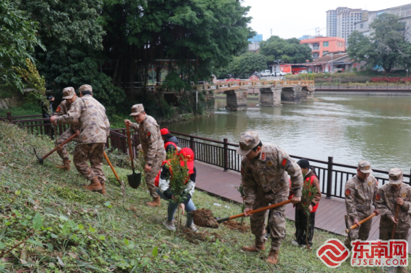 活動(dòng)現(xiàn)場(chǎng) 東南網(wǎng)3月6日訊(通訊員 陳文華文/圖)3月5日,莆田市荔城區(qū)退役軍人事務(wù)局、區(qū)人武部、新度鎮(zhèn)組織退役軍人志愿服務(wù)隊(duì)開(kāi)展“學(xué)雷鋒?文明實(shí)踐我行動(dòng)”志愿服務(wù)活動(dòng),營(yíng)造“奉獻(xiàn)、友愛(ài)、互助、進(jìn)步”崇德向善的社會(huì)氛圍,展現(xiàn)新時(shí)代退役軍人的良好風(fēng)貌。 此次活動(dòng)以“雷鋒精神傳薪火 巡河實(shí)踐守初心”為主題,退役軍人志愿服務(wù)隊(duì)與新度鎮(zhèn)民兵、黨員干部、志愿者、社工齊聚在下橫山五府橋(渠橋河),開(kāi)展植樹(shù)、垃圾清理等活動(dòng)。志愿者們手持垃圾鉗沿河岸進(jìn)行清潔,揮锨鏟土、挖穴栽樹(shù)、扶直培土,認(rèn)真細(xì)致地栽好每一株樹(shù)木,現(xiàn)場(chǎng)一片熱火朝天的勞動(dòng)場(chǎng)景,為實(shí)現(xiàn)河暢、水清、岸綠、景美獻(xiàn)出力量。當(dāng)天,志愿者們還聆聽(tīng)木蘭溪治理宣講,進(jìn)一步增強(qiáng)保護(hù)水資源、維護(hù)生態(tài)環(huán)境的意識(shí)。