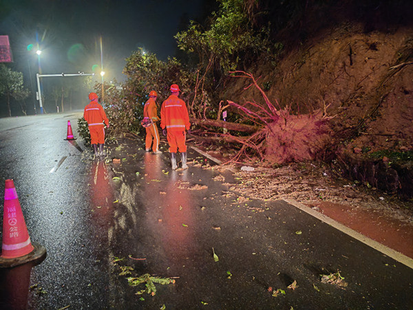 泰寧公路分中心迅速啟動應(yīng)急預(yù)案,連夜搶通道路。 東南網(wǎng)3月14日訊(通訊員 謝華 黎秋艷)3月12日晚7時,泰寧縣突遇雷雨、大風(fēng)、冰雹等強對流天氣,境內(nèi)普通國省干線公路沿線出現(xiàn)路樹倒伏、標志標牌傾倒、邊坡塌方等不同程度的險情,嚴重影響群眾安全通行。 泰寧公路分中心迅速啟動應(yīng)急預(yù)案,組織相關(guān)人員,連夜搶通道路。公路一線,工作人員忙得不可開交,一邊在設(shè)置安全錐、警示牌,告知司機行車路況,引導(dǎo)過往車輛安全有序通過;另一邊,養(yǎng)護車燈閃爍,班站工作人員徒手將滑落沙石、倒伏樹木搬移至路邊,及時恢復(fù)道路安全暢通。 截至12日晚十點,泰寧境內(nèi)普通國省道全面恢復(fù)正常通行,泰寧公路分中心累計出動人員37人次,投入應(yīng)急機械設(shè)備8臺次(輛次),清除28處樹木倒伏、1處溜方落石,高效搶通道路,為群眾安全出行護航。