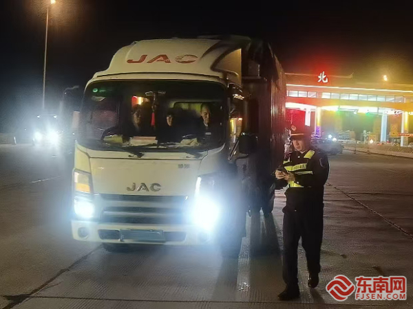 執(zhí)法人員檢查證件。寧德高速執(zhí)法支隊供圖 晝夜聯(lián)動,夜間突查超限運(yùn)輸。3月10日晚,福安北中隊聯(lián)合轄區(qū)高速交警開展夜間治超專項行動,精準(zhǔn)打擊貨運(yùn)車輛違法超限運(yùn)輸行為。執(zhí)法人員采取 “定點(diǎn)布控 + 流動巡查” 的模式,在轄區(qū)收費(fèi)站設(shè)置臨時檢查點(diǎn),通過目測車輛外廓尺寸、核驗(yàn)電子運(yùn)單、檢查貨物固定情況等方式,對過往車輛進(jìn)行嚴(yán)格篩查。