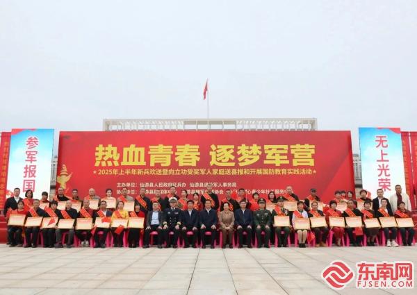 巡游現(xiàn)場(chǎng) 東南網(wǎng)3月17日訊(通訊員 陳君妍 黃惠云 文/圖)3月14日,莆田市仙游縣舉行2025年上半年“熱血青春 逐夢(mèng)軍營(yíng)”主題系列歡送新兵活動(dòng),173名熱血青年身披戎裝、懷揣赤誠(chéng),即將開啟保家衛(wèi)國(guó)的軍旅生活。值得一提的是,此次活動(dòng)別出心裁,在以往送喜報(bào)方式的基礎(chǔ)上進(jìn)行創(chuàng)新,將新兵與立功喜報(bào)一同送達(dá),讓新兵在踏上征程之際,感受榜樣力量,汲取奮進(jìn)動(dòng)力,共筑熱血報(bào)國(guó)夢(mèng)。 當(dāng)天下午3時(shí)許,新兵及其家屬、立功受獎(jiǎng)軍屬在縣人民武裝部營(yíng)區(qū)集結(jié)。激昂的鑼鼓聲瞬間點(diǎn)燃了現(xiàn)場(chǎng)氣氛,2025年上半年仙游新兵出征巡游儀式正式啟幕。巡游隊(duì)伍從縣人民武裝部營(yíng)區(qū)出發(fā),沿著八二五北街、清源東路、二環(huán)路紅綠燈行進(jìn),最終抵達(dá)仙游縣六館廣場(chǎng)。 一路上,交警全程護(hù)航,場(chǎng)面聲勢(shì)浩大。道路兩旁,學(xué)生們列隊(duì)歡送,群眾自發(fā)沿路相送,大家揮舞著紅旗,用最真摯的祝福為即將奔赴軍營(yíng)的青年們壯行。173名新兵身著嶄新軍裝、胸戴紅花、身披綬帶,邁著整齊的步伐,齊聲高唱《團(tuán)結(jié)就是力量》,展現(xiàn)出新時(shí)代仙游好兒郎的良好風(fēng)貌和高昂士氣,“當(dāng)兵光榮”的氛圍彌漫在整個(gè)城區(qū)。