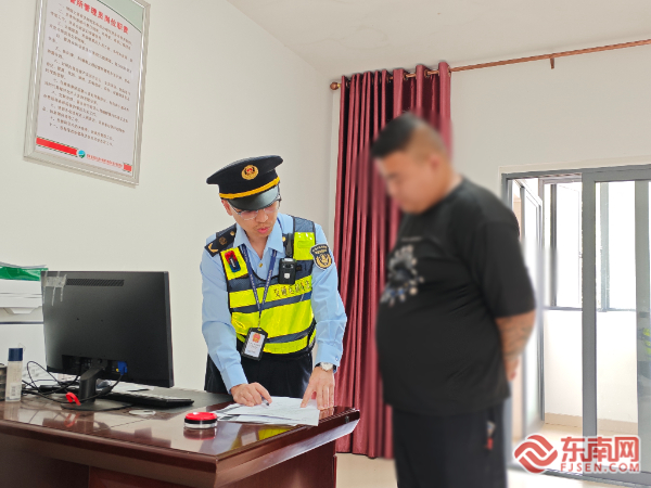執(zhí)法人員對駕駛員進行普法。寧德高速執(zhí)法支隊供圖 當天上午10時許,一輛冀D牌照的輕型廂式貨車駛?cè)霗z查區(qū)。經(jīng)現(xiàn)場測量,該車裝載高度達4.2米,超出國家規(guī)定限高0.2米。執(zhí)法人員按規(guī)定登記車輛證件后,并未直接開具罰單,而是啟動教育程序。