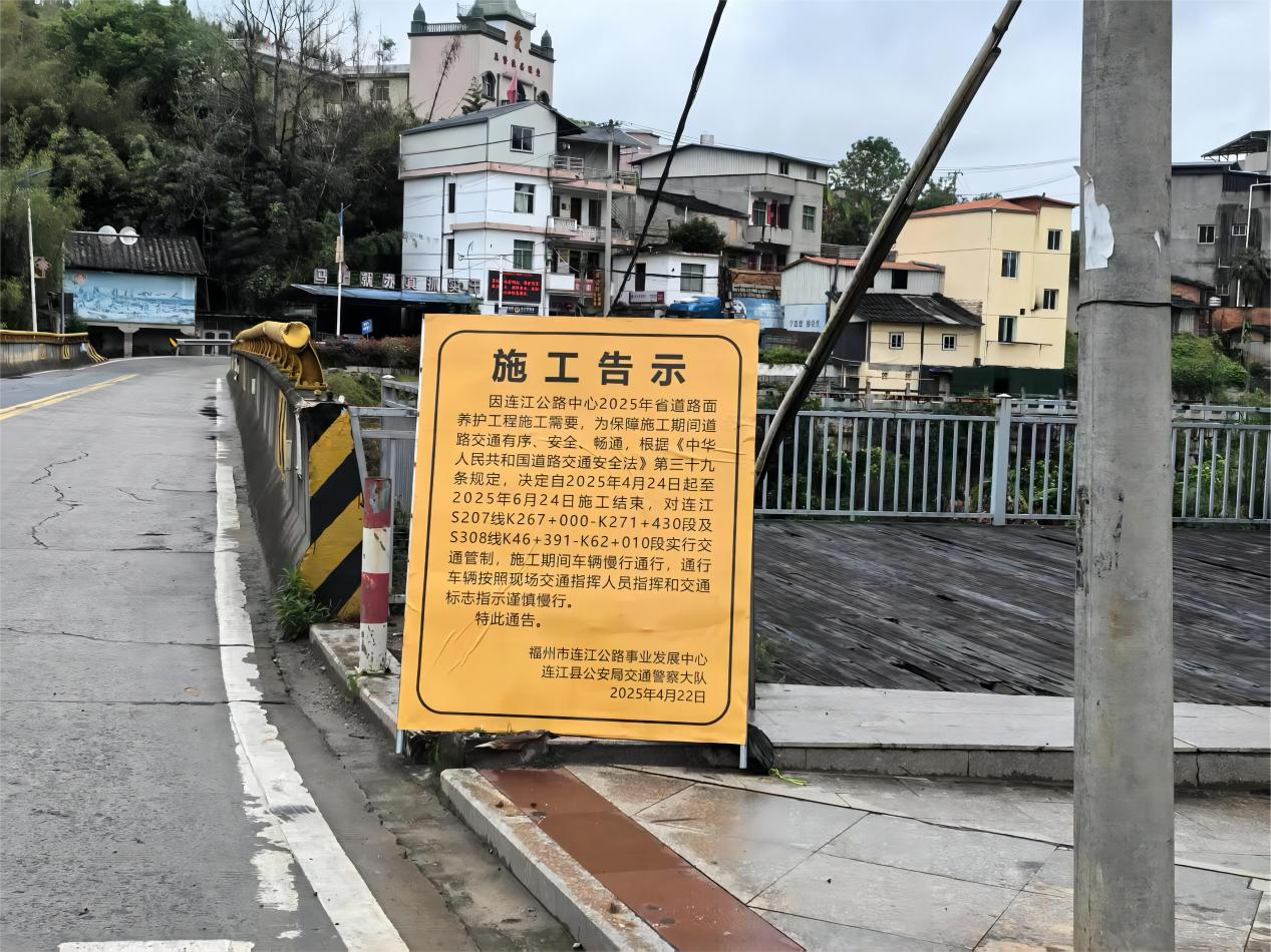 現(xiàn)場交通標(biāo)識(連江公路中心供圖) 施工期間,相關(guān)路段將實行交通管制措施,請過往車輛及行人注意現(xiàn)場交通標(biāo)識,減速慢行,確保安全通行。 |