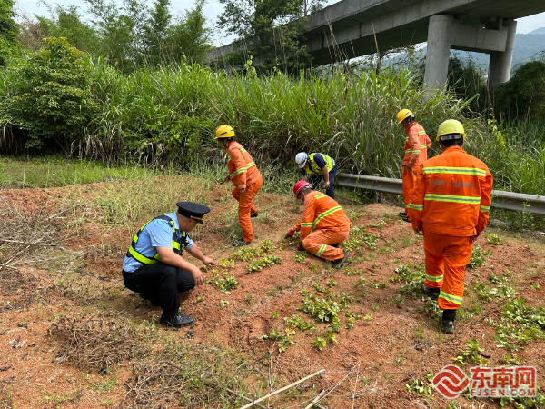 東南網(wǎng)5月22日訊(通訊員 李思澄 陳亮明)寧德高速執(zhí)法支隊賽岐中隊聯(lián)合下白石養(yǎng)護部門、白云山保障組,于近期在轄區(qū)高速公路沿線開展路域環(huán)境專項整治工作,全面排查并清理違規(guī)種植、違章搭建等行為,切實保障公路安全暢通。