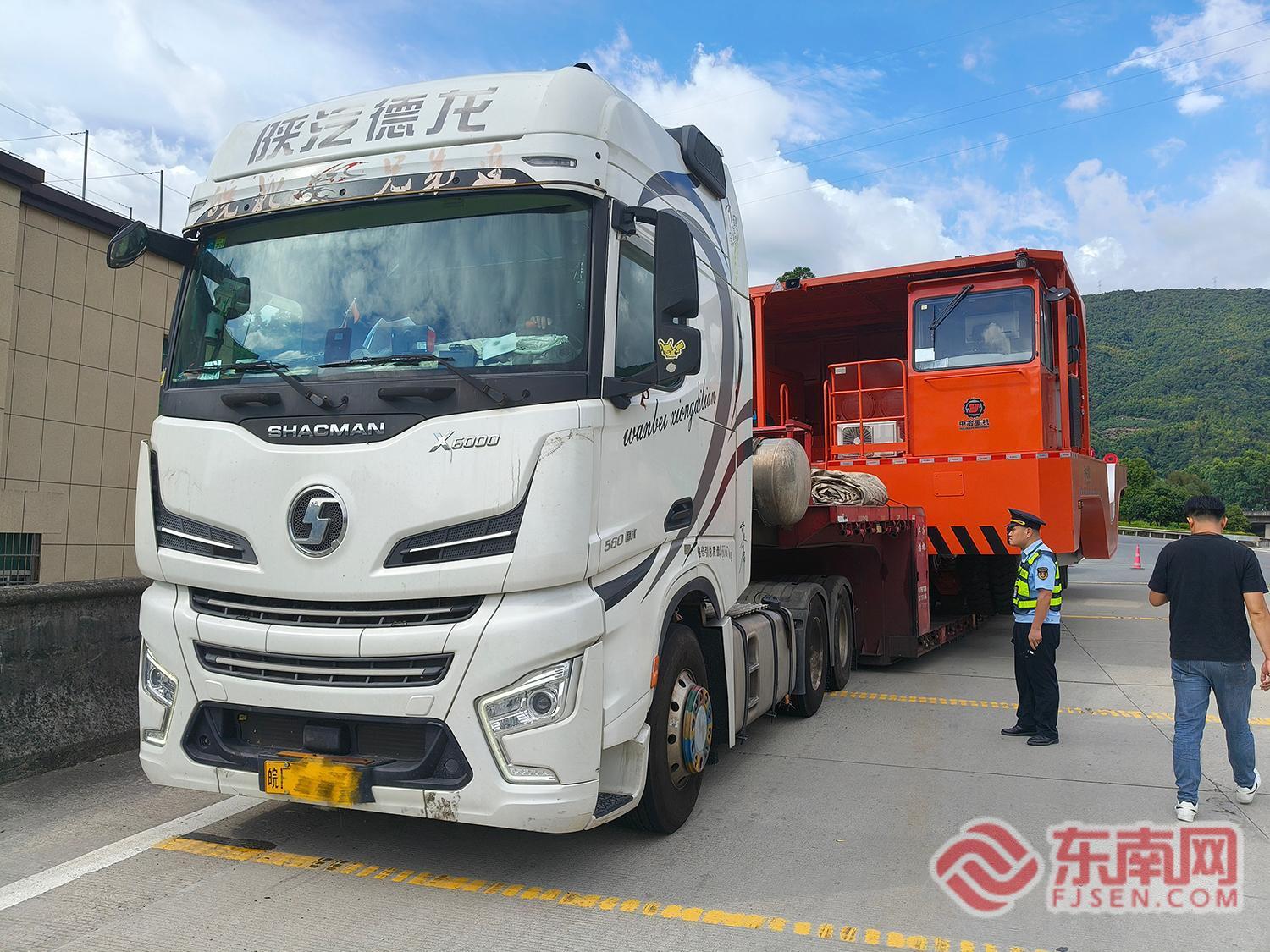 超限車輛在安全區(qū)域等候。寧德高速執(zhí)法支隊供圖 寧德高速執(zhí)法支隊賽岐中隊工作人員發(fā)現(xiàn)情況后,第一時間安撫司機情緒,并迅速核查其相關(guān)證件,確認(rèn)手續(xù)齊全有效,為后續(xù)處置奠定基礎(chǔ)。