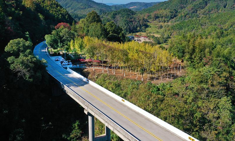 建寧縣G528線黃坊鄉(xiāng)武調(diào)三橋旁的銀杏林。