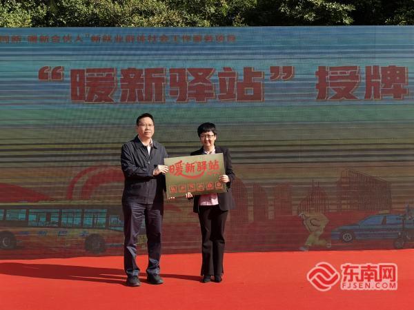 “暖新驛站”牌匾授牌(東南網(wǎng)記者 劉瑋 攝) 上午9時(shí),儀式在溫馨的宣傳片中拉開帷幕。中共廈門市委社會(huì)工作部領(lǐng)導(dǎo)向廈門公交集團(tuán)代表授予“暖新驛站”牌匾,現(xiàn)場(chǎng)掌聲陣陣,標(biāo)志著這一惠民項(xiàng)目正式落地。公交集團(tuán)代表表示,作為扎根廈門的國有企業(yè),集團(tuán)始終積極履行社會(huì)責(zé)任,將依托自身資源優(yōu)勢(shì),為新就業(yè)群體打造奔波路上的“暖心驛站”。 隨后,三聲清脆的巴士鳴笛響起,“暖新巴士”親子研學(xué)計(jì)劃正式發(fā)車。20對(duì)新就業(yè)群體親子家庭攜手登車,開啟一天精彩的城市探索之旅。