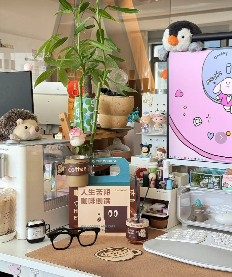 “去班味”的核心,是打工人對(duì)職場(chǎng)掌控感的主動(dòng)爭(zhēng)取。標(biāo)準(zhǔn)化的職場(chǎng)體系中,崗位權(quán)責(zé)、工作流程多由外界設(shè)定,個(gè)體常處于被動(dòng)適應(yīng)狀態(tài)。而布置工位的過(guò)程,是在既定框架內(nèi)創(chuàng)造專屬領(lǐng)地的過(guò)程:喜歡簡(jiǎn)約的選素色收納,偏愛可愛的擺卡通玩偶,熱衷生活的備養(yǎng)生茶罐,每個(gè)人的布置都藏著對(duì)“自我空間”的定義。杭州有女生曾花上萬(wàn)元用潮玩盲盒爆改工位,雖引發(fā)爭(zhēng)議,但本質(zhì)與普通打工人擺一束花并無(wú)不同,都是想在標(biāo)準(zhǔn)化職場(chǎng)中,為“自我”劃出一塊不容侵犯的小天地。