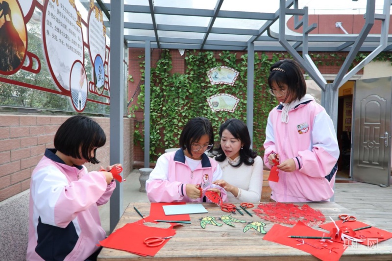 央廣網(wǎng)南平10月29日消息 “我們非常喜歡跟黃老師學剪紙,這是我剪的蝴蝶,你看它多么漂亮呀!”順昌一中七年級(3)班學生陳梓鋆高興地說。閩北剪紙(順昌)非遺傳承人黃麗萍被順昌一中聘為課后延時活動輔導教師,10月28日,她按時來到學校教學生剪紙。