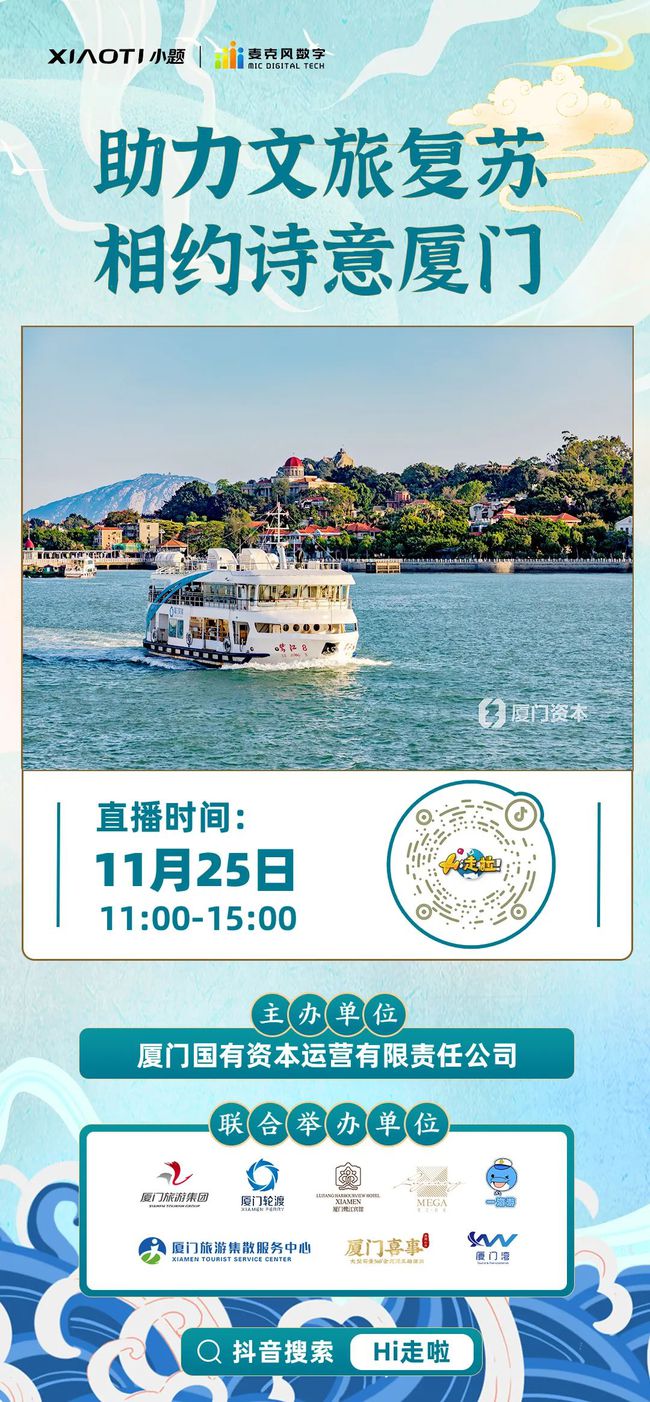 助力文旅復(fù)蘇,相約詩意廈門,助力廈門文旅復(fù)蘇,推介廈門本土品牌,廈門國有資本運(yùn)營有限公司聯(lián)合旗下廈門旅游集團(tuán)、廈門輪渡廈門鷺江賓館、廈門灣等于今日11:00-15:00在抖音舉辦廈門旅游專場直播。 ![]() 國有資本運(yùn)營公司作為廈門旅游全要素集成者,旗下匯聚了碼頭、海上客運(yùn)、海上旅游、臨港商業(yè)、品牌酒店、集散中心、智慧平臺等旅游全部業(yè)態(tài),直播現(xiàn)場連線資本運(yùn)營公司旗下子公司,介紹具有廈門特色的旅游產(chǎn)品。 ![]() ![]() 起源于鷺江賓館的鷺江·佲家在這次直播中為大家?guī)硭娜颂撞汀㈦p人套餐、佲家池畔浪漫下午茶周末套餐等優(yōu)惠團(tuán)購,還有更多精彩文旅好物在直播間等你! ![]() A萌君還了解到中國首部以華僑家國情懷為主題,以廈門文化為核心的大型實(shí)景360°全沉浸互動演出《廈門喜事》計劃將于2022年春季在廈門國際郵輪中心廈鼓碼頭亮相,觀眾將換上精美華服與才貌雙絕的演員近身互動,感受百年廈門時光,享受視聽盛宴敬請期待哦~ |
