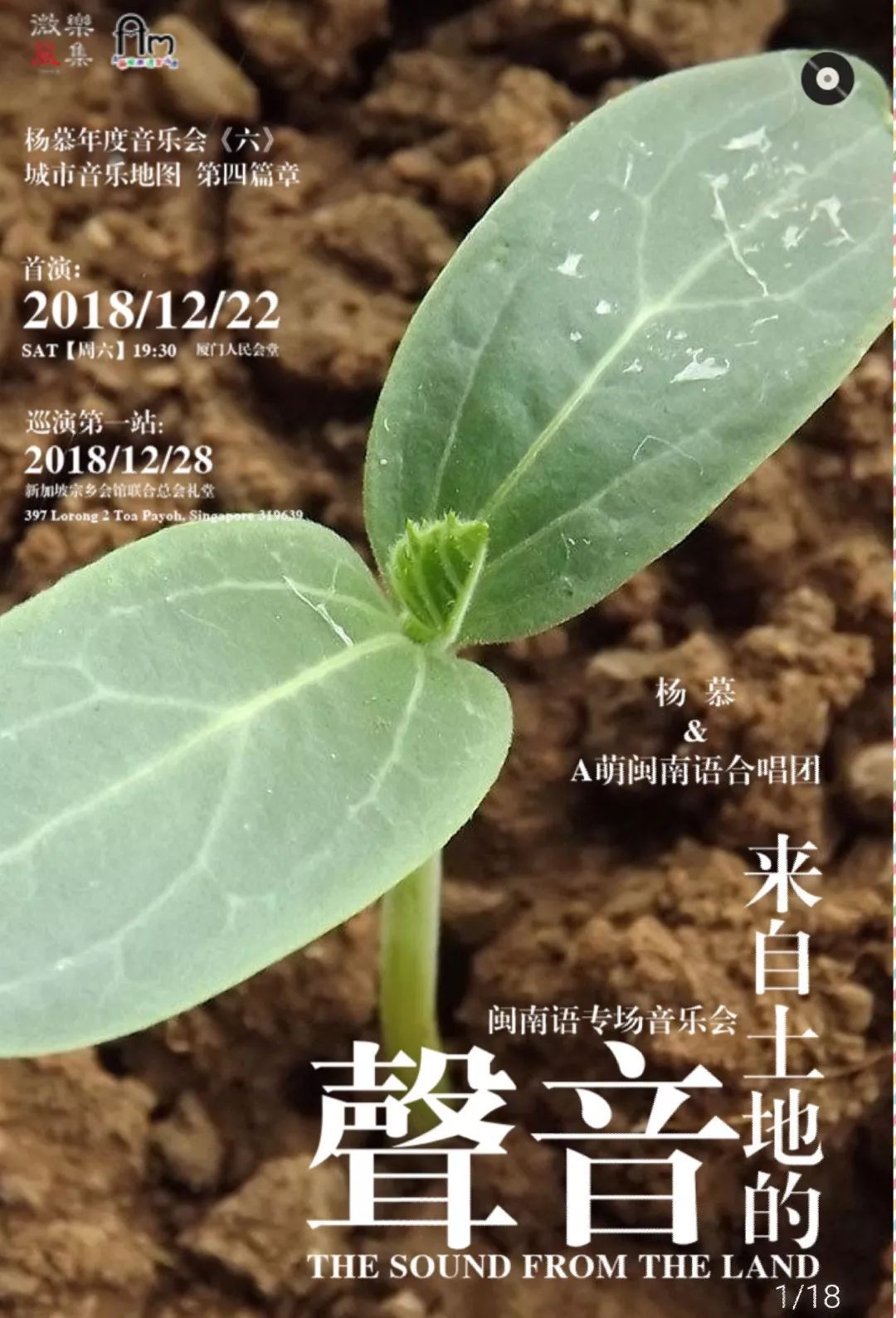 12月22日 臺(tái)灣音樂(lè)家楊慕即將 帶領(lǐng)A萌閩南語(yǔ)合唱團(tuán) 在廈門市人民會(huì)堂舉辦閩南語(yǔ)專場(chǎng) 音樂(lè)會(huì)《來(lái)自土地的聲音》 再次為廈門城市獻(xiàn)禮