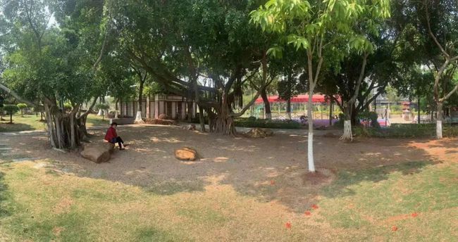 改造后(鋪設(shè)透水磚平臺并新增原石桌椅) ![]() 改造前
