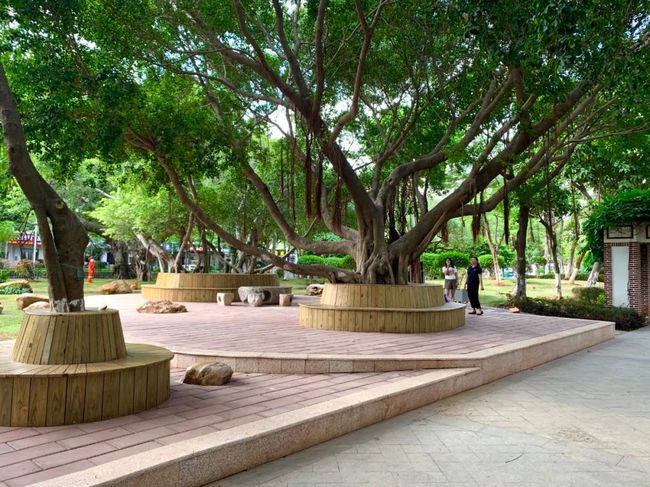 改造后(鋪設(shè)透水磚并加設(shè)原石桌椅) 快約上三五好友逛起來~ |