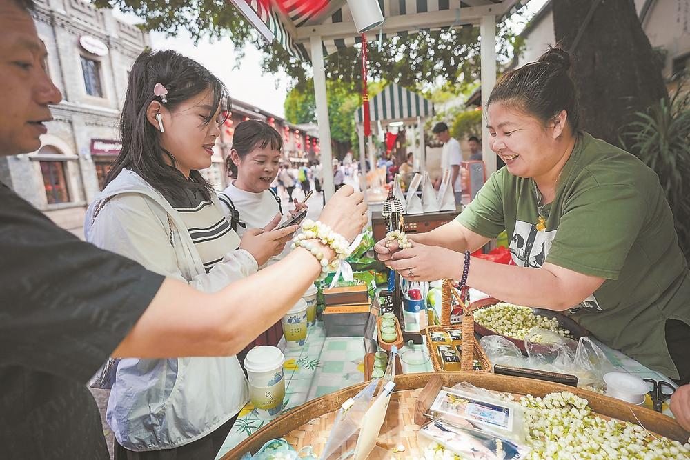 10月5日,一場由軟木畫、茉莉花、面人、風(fēng)味小吃等非物質(zhì)文化遺產(chǎn)項(xiàng)目組成的集市,在福州三坊七巷受到市民和游客熱捧,讓大家在節(jié)日期間感受福州非遺文化的獨(dú)特魅力。圖為游客在挑選茉莉花手串。福建日報通訊員 謝貴明 攝 金秋時節(jié),中秋國慶“雙節(jié)”聯(lián)動,節(jié)日氛圍格外濃厚。人們或與親朋好友歡聚一堂,或到紅色景區(qū)瞻仰朝圣,或攜全家老小助威亞運(yùn)……豐富多彩的文化活動令假期洋溢著家國溫情。 情懷激蕩 紅色,是國慶節(jié)主色調(diào)。在革命圣地陜西延安,全國各地游客紛至沓來。 記者在楊家?guī)X革命舊址看到,講解員聲情并茂地講述革命歷史,游客駐足聆聽、神情動容。 除了傳統(tǒng)的參觀體驗(yàn),近年來,延安創(chuàng)新挖掘紅色資源,一系列紅色演藝項(xiàng)目吸引了眾多游客。 “《延安保育院》等舞臺劇在這個假期場場爆滿、一票難求,充分體現(xiàn)了沉浸式紅色文化體驗(yàn)在傳承延安精神、感染當(dāng)代觀眾方面的獨(dú)特價值?!标兟眉瘓F(tuán)延安公司總經(jīng)理助理馬男說。 這個“雙節(jié)”假期,恰逢亞運(yùn)會在浙江杭州舉行,每一個奪冠時刻、每一次國歌響起,都激蕩起熾熱的愛國情。 香港青年李淑嫻和朋友早早做好了計(jì)劃:一人負(fù)責(zé)搶亞運(yùn)會門票,一人負(fù)責(zé)搶香港到杭州的高鐵票,一人負(fù)責(zé)做杭州游玩攻略。10月1日,3位小伙伴抵達(dá)亞運(yùn)場館“大蓮花”,開啟了自己的亞運(yùn)之旅。 在亞運(yùn)場館“大小蓮花”附近的地鐵站、街道廣場,滿是拍照“打卡”的游客。 從長春來到杭州度假的彭女士說:“前兩天去了西湖、西溪,專門定在國慶這一天來看‘大小蓮花’,雖然沒有買到亞運(yùn)會門票,但買些亞運(yùn)文創(chuàng)產(chǎn)品很有紀(jì)念意義,在賽場外聽到國歌奏響也感到很自豪。” 國風(fēng)勁吹 位于蘇州古城的平江歷史文化街區(qū)熱鬧非凡,假期前6日,這里累計(jì)客流量超80萬人次,許多年輕人著漢服、梳發(fā)髻前來。 平江路大儒巷38號經(jīng)過修繕,成為一個對外開放的特色文化空間。游客們在古色古香的院落中聽評彈、看演出、品非遺,感受江南風(fēng)情。 在大儒巷設(shè)立的桃花塢木版年畫展示展銷中心,非遺傳承人與游客現(xiàn)場互動很是熱鬧。帶著孩子參與互動的浙江游客王女士表示,這些年畫配色好看,寓意也好,孩子在互動體驗(yàn)中可以加深對非遺項(xiàng)目的認(rèn)識和對傳統(tǒng)文化的了解。 “雙節(jié)”期間,北京市民宋慈選擇帶全家來到河南鄭州,感受中原大地的厚重文明。 作為文化和旅游部節(jié)前發(fā)布的全國旅游演藝精品項(xiàng)目之一,鄭州的“只有河南·戲劇幻城”通過高科技手段把黃河文化和河南歷史創(chuàng)造性地濃縮成一場高水準(zhǔn)的演出,擁有總長近700分鐘的不重復(fù)劇目、56個變幻無窮的情景空間。今年假期,主辦方還策劃推出了“花樣告白祖國”特別節(jié)目和“我愛你中國”燈光秀主題活動,客流量創(chuàng)新高,高峰期日均觀劇達(dá)12萬人次。 市場紅火 中秋節(jié)、國慶節(jié)期間歷來是消費(fèi)旺季,逛書店、看戲劇、聽演唱會成為人們文化消費(fèi)的重要組成部分。在廣東,沉浸式喜歌劇《蘋果之夜》開票后即“秒光”。 “雙節(jié)”期間,中外精品劇目輪番在廣州上演:上海歌劇院舞劇團(tuán)的舞劇《嫦娥》、西班牙塞維利亞弗拉門戈舞蹈團(tuán)的舞劇《卡門》、國家京劇院的《龍鳳呈祥》《穆桂英掛帥》…… “我們想將傳統(tǒng)的、藝術(shù)的歌劇演出變得更有趣,吸引更多觀眾走進(jìn)劇院?!薄短O果之夜》藝術(shù)總監(jiān)、星海音樂學(xué)院歌劇中心主任楊巖說,“希望通過我們的努力,讓演藝市場更加繁榮?!?/p> 有人流連城市,有人追尋遠(yuǎn)方。不久前,“普洱景邁山古茶林文化景觀”成為我國第57項(xiàng)世界遺產(chǎn)。假期中,這個云南新晉世界遺產(chǎn)地人氣攀升,迎來申遺成功后的首個旅游打卡熱潮。據(jù)統(tǒng)計(jì),9月29日至10月4日,景邁山接待外來游客超過1.5萬人次。 來自四川成都的游客劉亮特意為自己安排了“茶香之旅”,在景邁山待了3天。他感慨:“茶融入了這里人們的日常生活,讓我感受到人茶共生的獨(dú)特文化傳承?!?/p> |